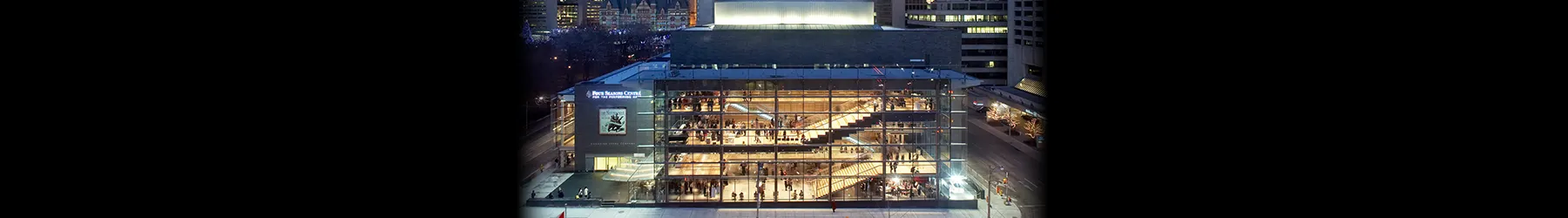 Opened in 2006, Four Seasons Centre was purpose-built as a home for Canada's major classical performing companies, including the Canadian Opera Company and the National Ballet of Canada. Designed by acclaimed architects with acoustics by legendary acoustician Yasuhisa Toyota, the venue combines state-of-the-art performance technology with a refined audience experience. Whether attending a dramatic opera, a soaring ballet performance, or a celebrated orchestra concert, patrons enjoy unmatched sound quality and intimate sightlines from every seat.